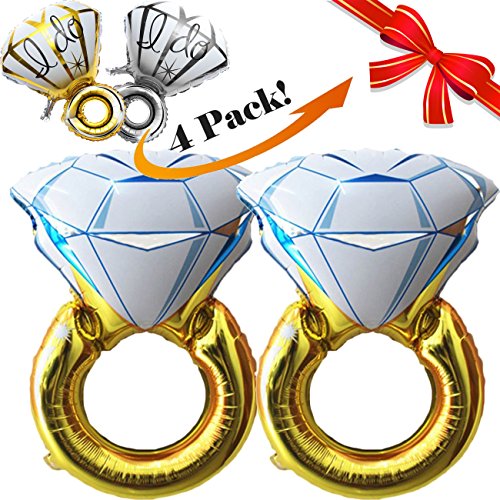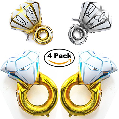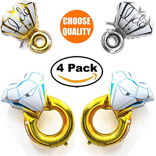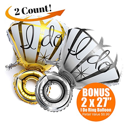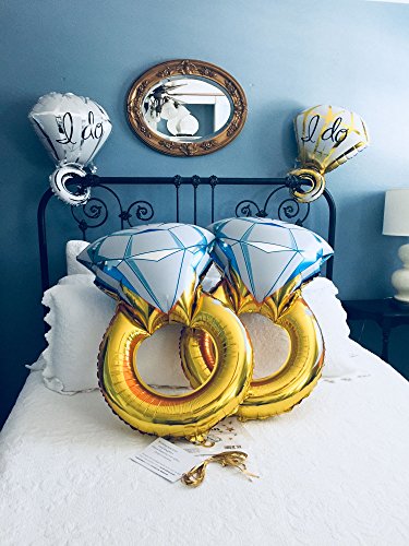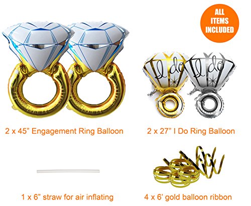 ▶ CHOOSE QUALITY Imagine receiving your Gold Engagement Ring Balloons with no hassle, no missing pieces, and no worries of tears or holes. Zoop Creations specifically designs our products to beat industry standards with foil up to 27% thicker, an extra-large seam, and a Self-seal design. Choose Quality. ▶ WOW EFFECT Picture these huge eye-catching ring balloons at your events. It will certainly make a brilliant statement and leave a memorable impression to your special someone and impress your guests. ▶ ALL SETUP ITEMS INCLUDED 2 BONUS PHOTO PROPS ?????? 2 - 45 inch Diamond Ring Balloons ?????? 2 - 27 inch "I Do" Ring Balloons ?????? 1 - 6" straw for inflating or deflating air ?????? Ribbons for balloons ▶ DUAL-USE DESIGN 1) Float with 100% Helium - Please fill balloons with 100% helium to have the best long lasting presentation. Large balloons may only float for a short period of time if 60/40 helium is used (60% helium, 40% air). Be sure to ask for 100% helium. 2) Non-float with air - These foil balloons can also be filled with air. This is perfect for photo prop or centerpiece decoration; can also be taped onto the wall with ease.