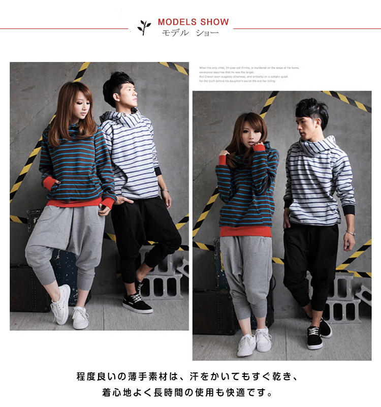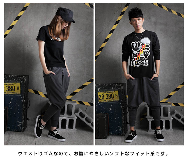 | 大きなドレープとポケットが印象的なサルエルです。程度良いの薄手素材は、汗をかいてもすぐ乾き、着心地よく長時間の使用も快適です。ウエストはゴムなので、お腹にやさしいソフトなフィット感です。動きやすさはもちろんのこと、シルエットも最高! ゆったりでダンス練習・舞台用としてお洒落に活用できます! | |