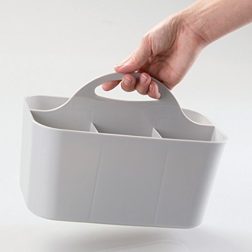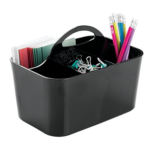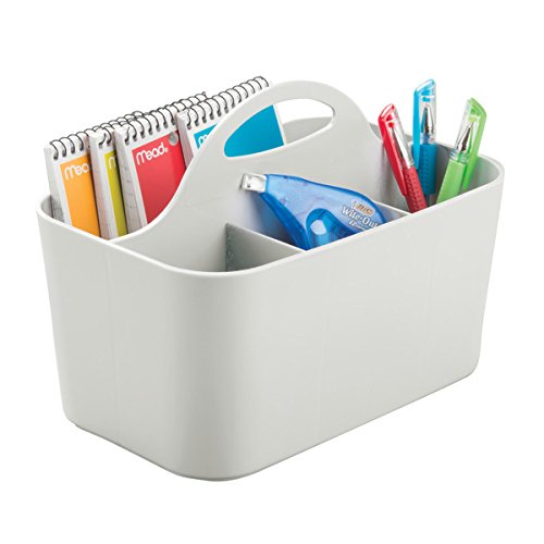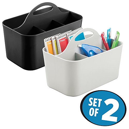 mDesign Desk Caddy for Home Office Storage to Hold Note Pads, Pens, Supplies - Set of 2, Light Gray/Black