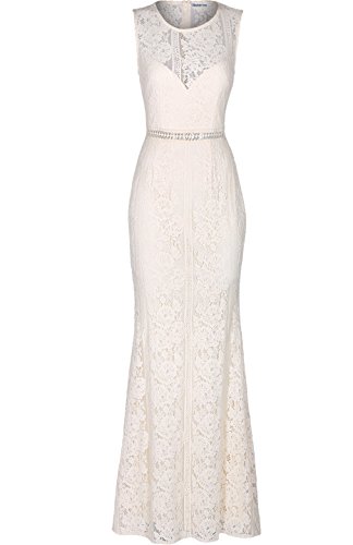 DESIGN: This floor length maxi evening party gown features a sleeveless design, wide scoop neckline, all over lace overlay, A-line flattering silhouettes, waist ribbon and high quality soft lace overlay. JUNIORS SIZING