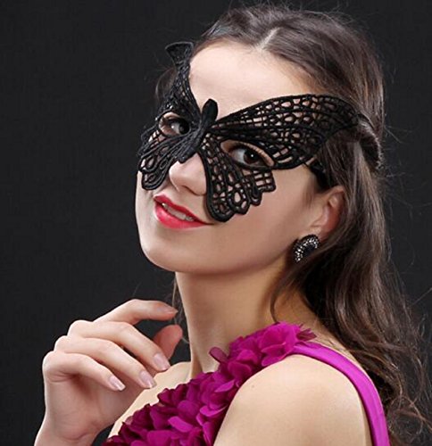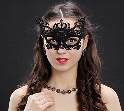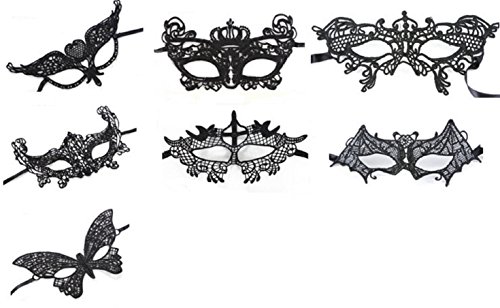 JS CHOW Pack Of 7 Black Sexy Lace Venetian Masquerade Ball Mask Halloween Party Accessory