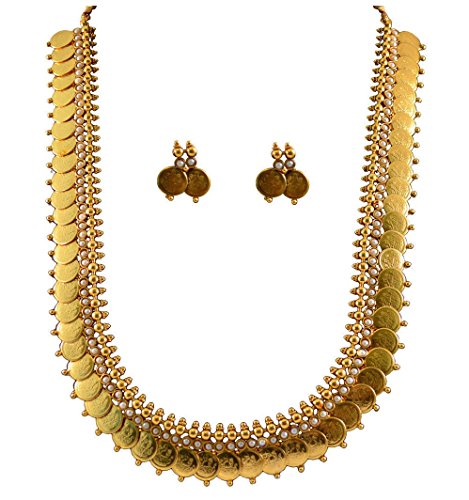Presenting from the house of YouBella , Artfully designed, this coin necklace adds a hint of raw ethnic beauty to any look. Representing a classic fusion of exquisite craftsmanship and feminine elegance, this set will definitely be a treasured inclusion in every woman's jewellery collection. The gold finish further ensures a long-lasting shine.!!
