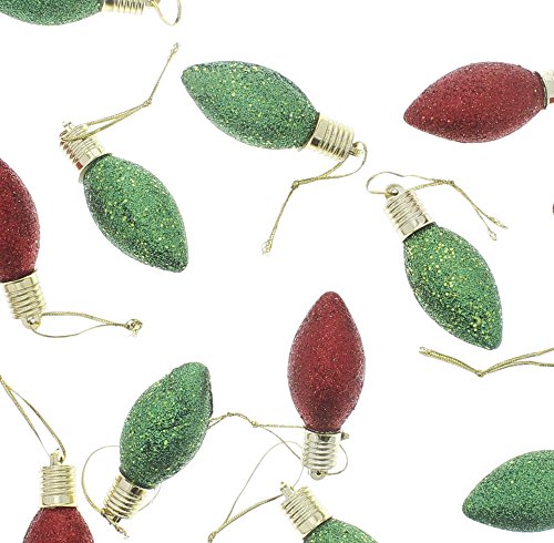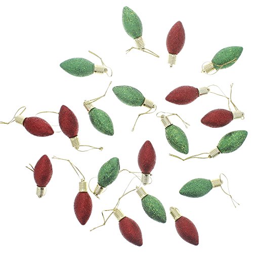 - Includes Set of 20 Red & Green Glitter Light Bulb Ornaments with Gold Hanging String.