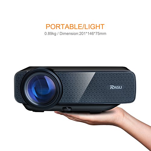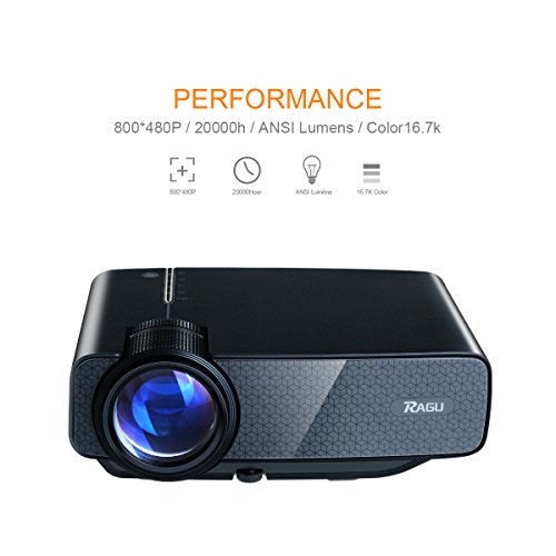 Studio : RAGU Publisher : RAGU Binding : Electronics Product Description RAGU Mini Home Projector-Project Big Screen Anywhere -Extreme Light and Compact √Net weight is 1kg only √Same size as the ipad mini √Compact design for space saving -Outstanding Display Performance √Native Resolution of 800 x 480 pixels √Supported 720p and max. supported resolution of 1920 x 1080 pixels √Displaying the content in the dark places is recommended √Adjust zoom ring and keystone before operating the projector -Lower Noise √Ultra-low noise cannot be aware of after 1-hour operating √Most cost-effective projector in market compared with competitors