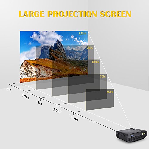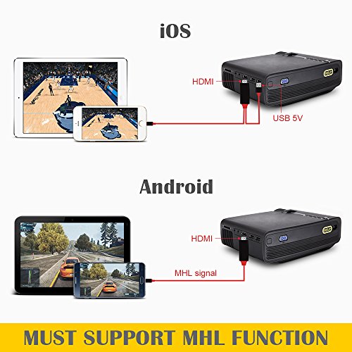 Technical Specifications Imaging Technology: TFT LCD Brightness: 1600 Luminous Efficiency Projection Size / Distance: 50 ~130 inches, 1.5 ~ 4 m Contrast: 1000 : 1 Aspect Ratio: 16 : 10 Projection Ratio: 1.4 : 1 Native Resolution: 800 x 480 pixels Supported Resolution: 1920 x 1080 pixels Keystone: Manual ± 15° Inputs: USB / AV / SD HDMI / Audio output Warm Tips Connecting to iPhone or iPad Please prepare: - a Lightning to HDMI adapter cable - a HDMI WiFi display adapter Connecting to Android Device Please prepare: - a MHL cable Note: Your device should support MHL function. Screen Mirroring with Smartphone Please prepare: -a HDMI/WiFi dongle Note: The stability of mirror screen completely depends on the HDMI/WiFi dongle. NOT for Business Presentation Please be advised that the projector is not suggested for data presentation in business. Not Support Dolby The projector cannot support Dolby for the present, but you can connect the projector to a PC/laptop for videos watching instead. What's in the Box? 1X RAGU Z400 Upgraded Projector 1X AV Cable 1X HDMI Cable 1X User's Manual