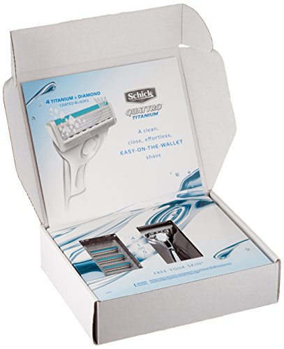 Schick Quattro Titanium Shaving Starter Gift Set for Men with 1 – Quattro Titanium Razor for Men and 4 – Quattro Titanium Razor Blade Refills for Men