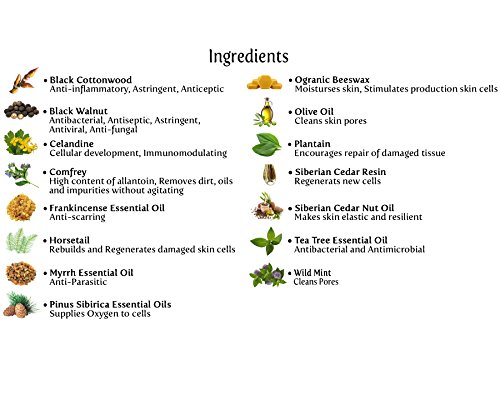 - ANCESTRAL RECIPE using VITAMIN PRESERVING PROCESS - This old family acne salve recipe was passed down with love from my Grandmother, a natural healer. Part of the success of this formula is the process that is used to preserve the nutritional content. Wildly grown herbs have a tremendous amount of vitamins and minerals. The production line consists of only glass and wood instruments. Unlike metal, these ecologically friendly materials save all vitamins and minerals.