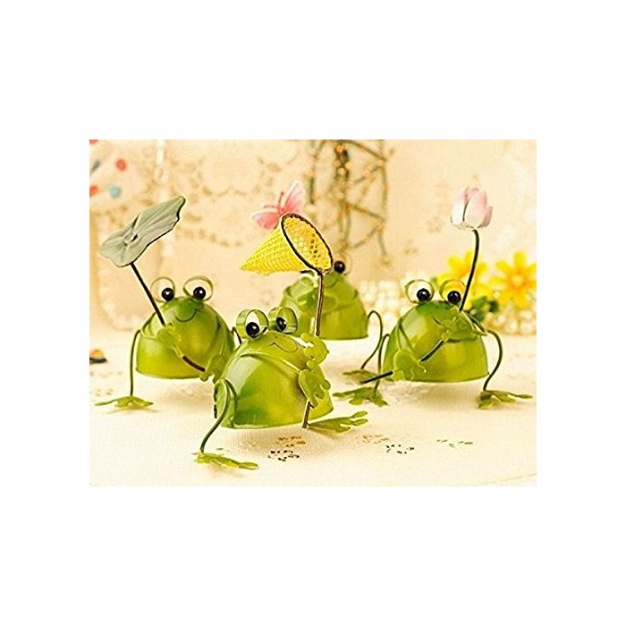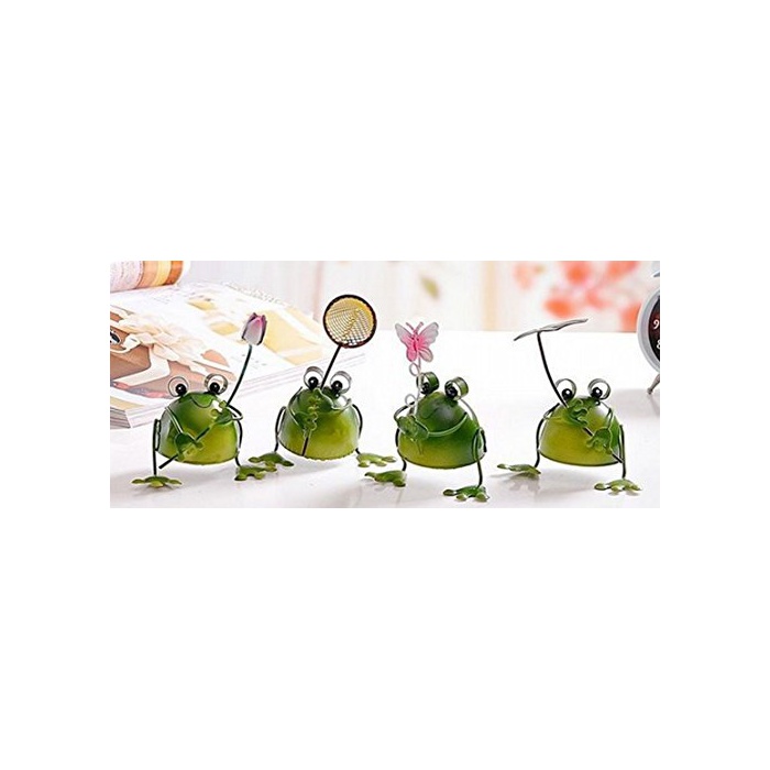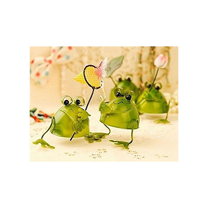 원본상품명: 【Amateras】幸運をもたらす 4匹の小さなカエル プチ 置物 プレゼント インテリアとしても最高 ブリキ で作られた かわいい 蛙 の オブジェ (葉、網、花、蝶) 【AM126】