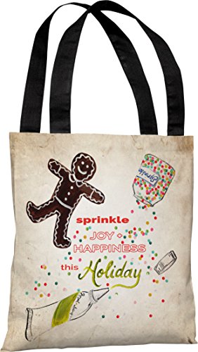 One Bella Casa Sprinkle Joy and Happiness Tote Bag by Timree Gold, 18"x 18", Tan/Multi