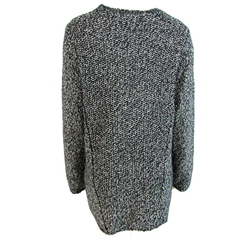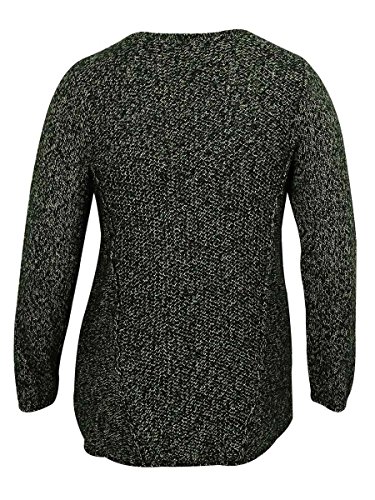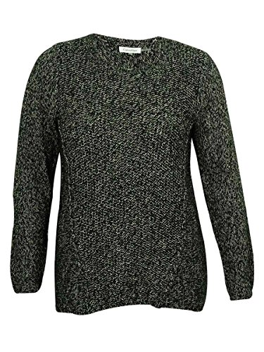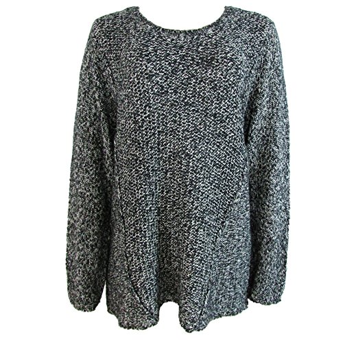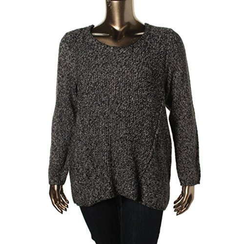 Calvin Klein Women's Crew Neck Marled Knit Sweater Hi-Lo Plus Size Black Birch