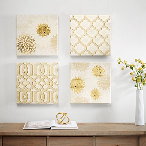 -. Title : Gilded Grandeur Canvas Art with Gold Foil 4 Piece Set