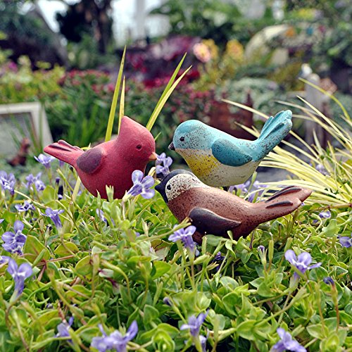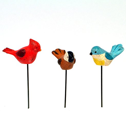 Miniature Fairy Garden Songbird Picks, Set of 3