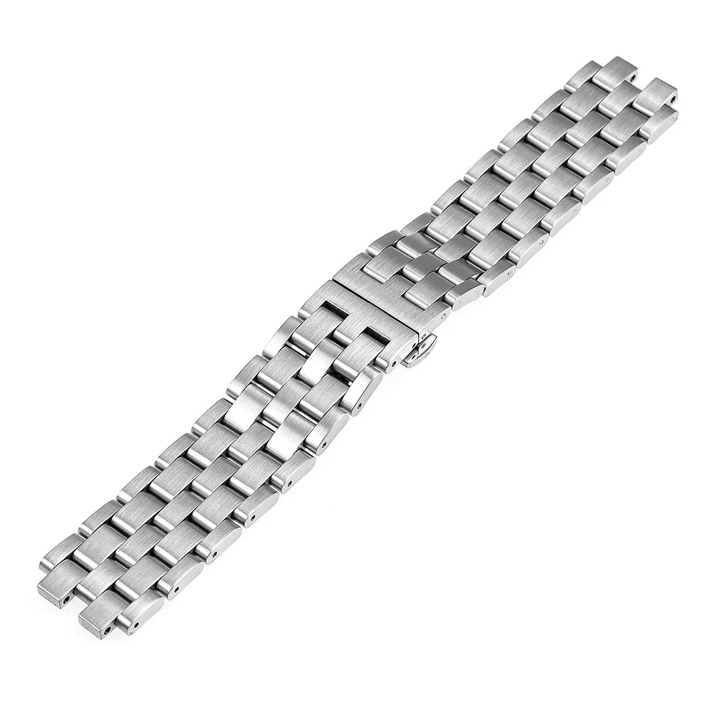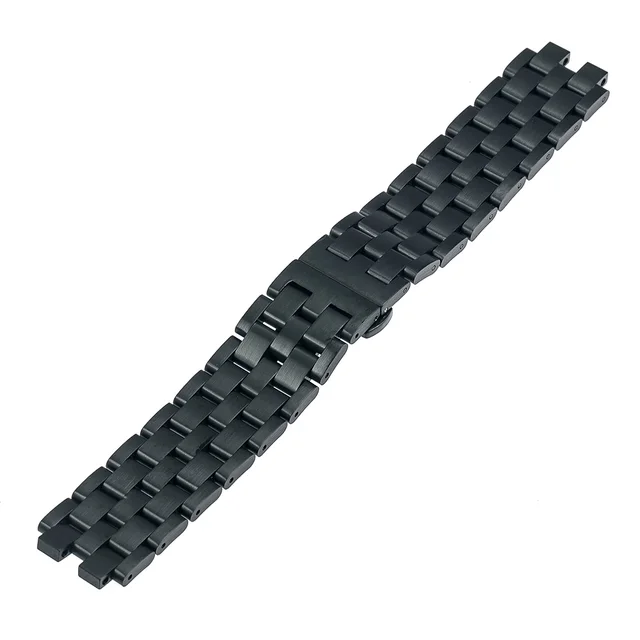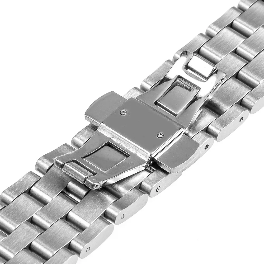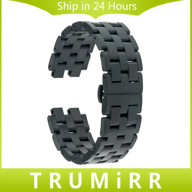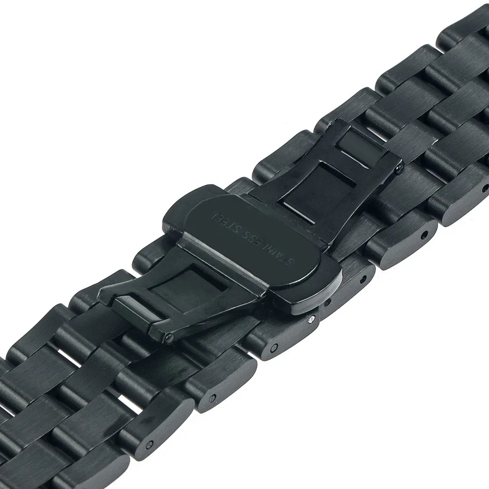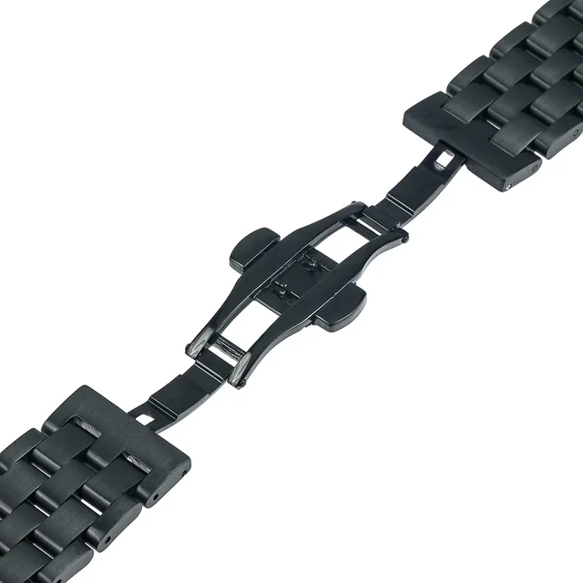 | [해외]22 미리메터 스테인레스 스틸 손목 페블 2 시계 밴드 나비 버클 팔찌 스트랩/w 모든 링크 이동식 블랙 실버 |
