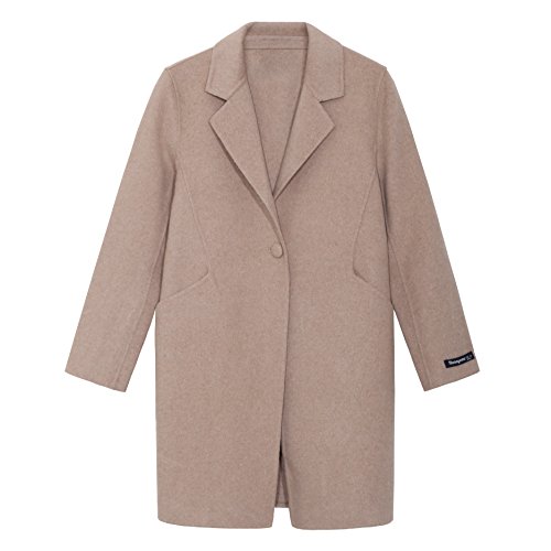 -. Title : Hanayome レディース ポケットがある ラペル ミドル丈 長袖 オーバーコート ジャケット アウターウエア MI25 (ベージュ, XXL) [並行輸入品]