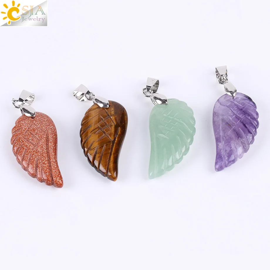 Product Name:Natural Semi-precious Stone Angel Wings Necklace Pendant for Women Men