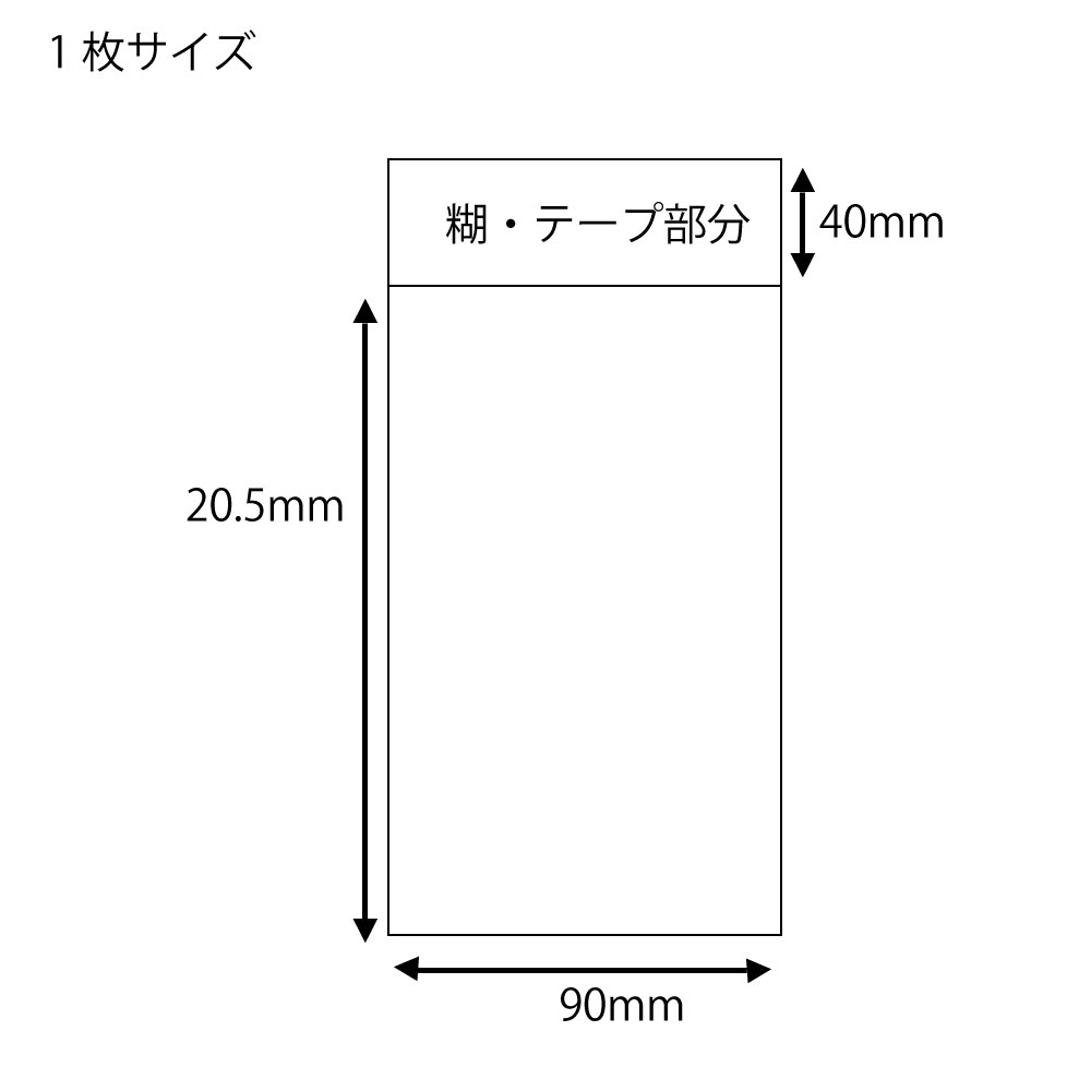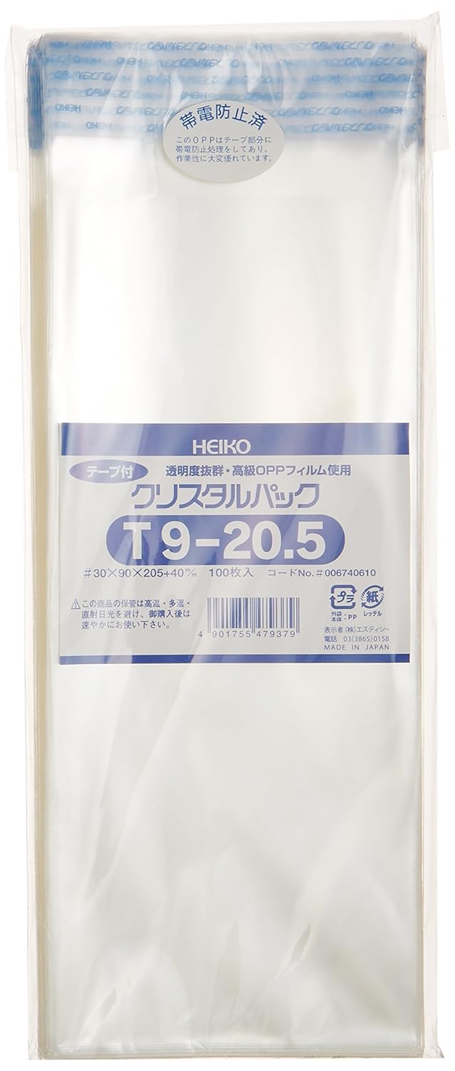 1枚サイズ:巾90×高205×テープ部分40mm 商品特徴:封のできるテープ付き。帯電防止加工。 内容量:100枚入 素材:オリエンテッドポリプロピレン(OPP)
