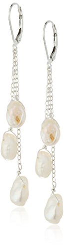 Keshi White Cultured Freshwater Pearl and Sterling Silver Chain Drop Earrings