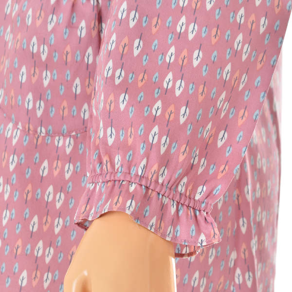 여성 파자마는 프릴과 리본을 사용하여 여성스러운 느낌을 강조하였습니다.