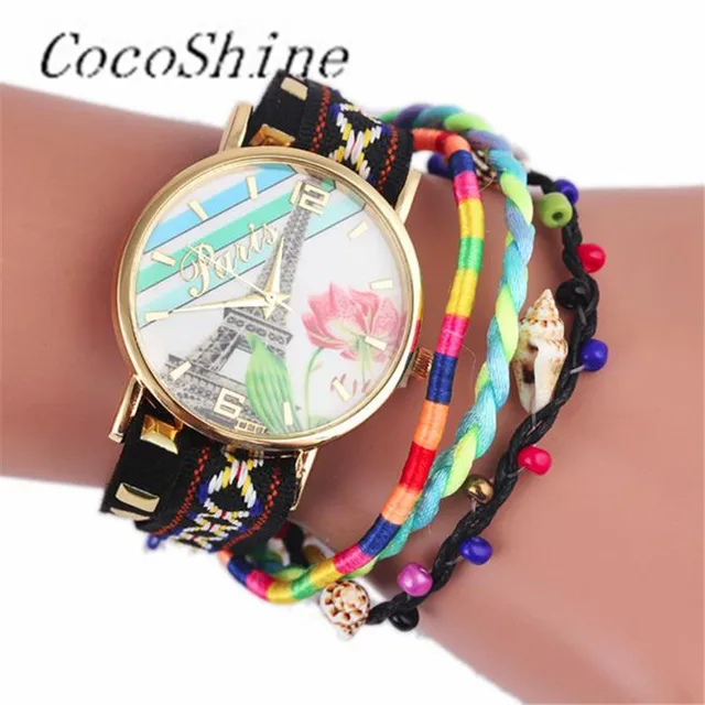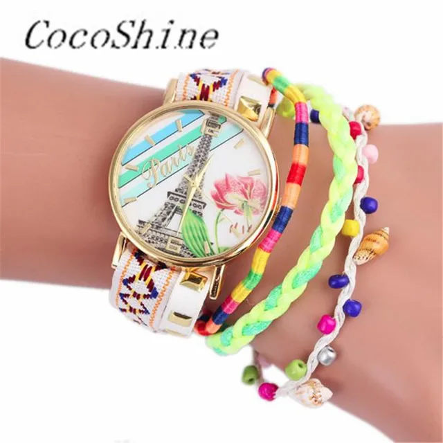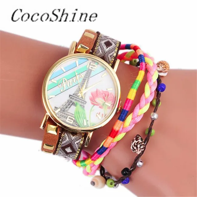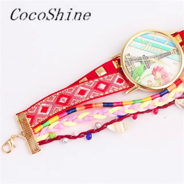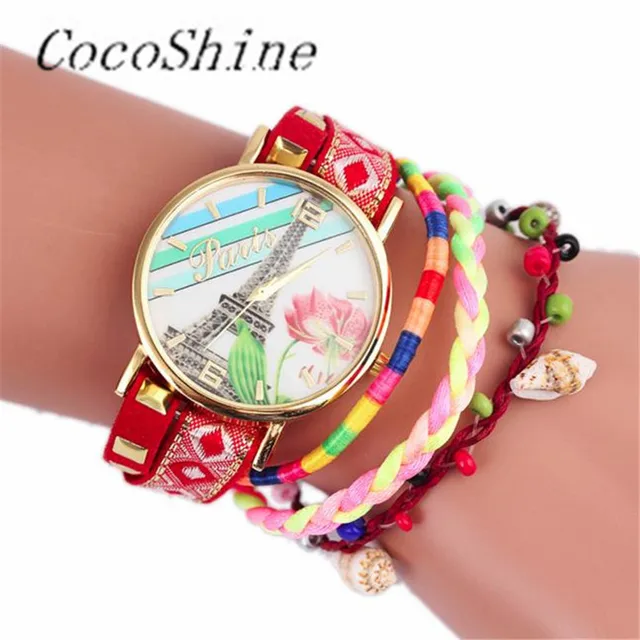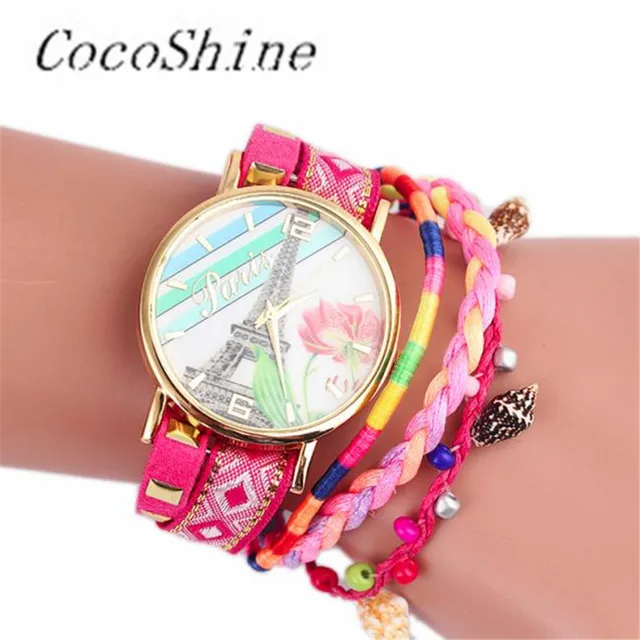 | [해외] CocoShine A-822 철의 타워 패턴 뜨개질 다이얼 석영 캐주얼 손목 시계 팔찌 시계 도매 |