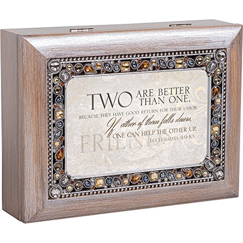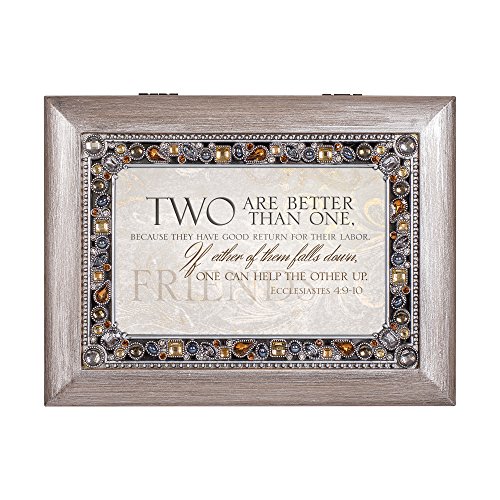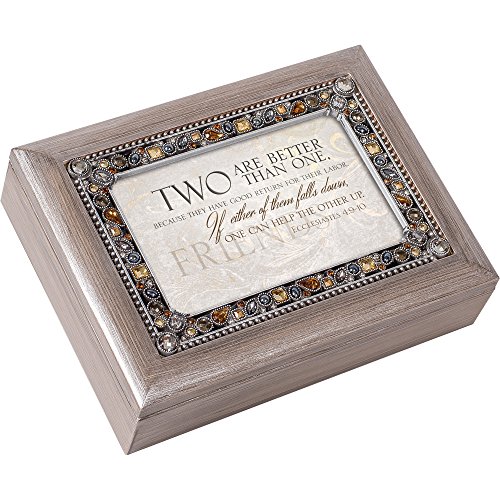 Two are Better One Will Help Brushed Pewter Jeweled Music Box Plays song On Eagle's Wings