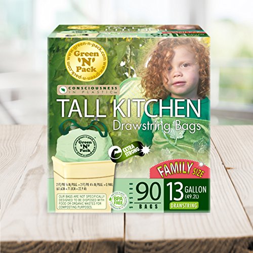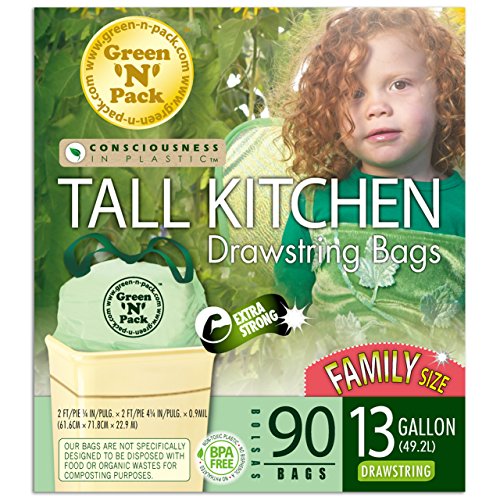 Green N Pack 13 Gallon Tall Kitchen Drawstring Bag, Tall Kitchen Trash Liners