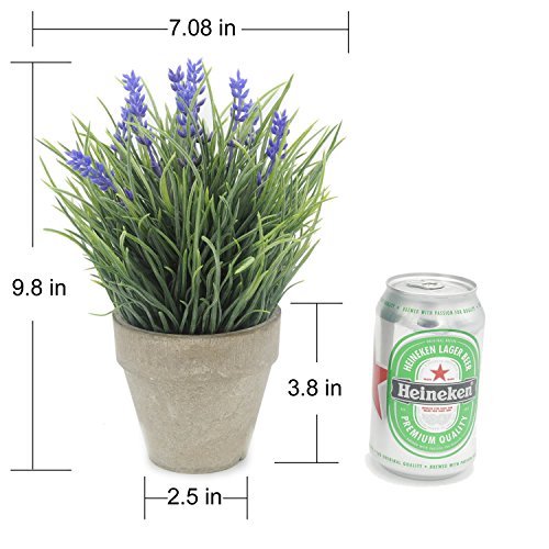 -. Binding : Kitchen -. Brand : Velener -. Feature : Lifelike potted lavender are a perfect addition to your home or office decor. / Suitable for both indoor or outdoor use. / Fake flowers and Leaves are made of plastic, easy for care. / Diameter of product: 7.08 " Height:9.8 " (from top tip of the plant to the bottom of the pot) / Comes with gray paper pulp pots, please do not put the pots in the water. -. Label : Velener -. Manufacturer : Velener -. PackageQuantity : 1 -. ProductGroup : Home -. ProductTypeName : HOME -. Publisher : Velener -. Studio : Velener -. Title : Velener Artificial Flowers Provence Lavender Arrangements in Pots for Home Decor