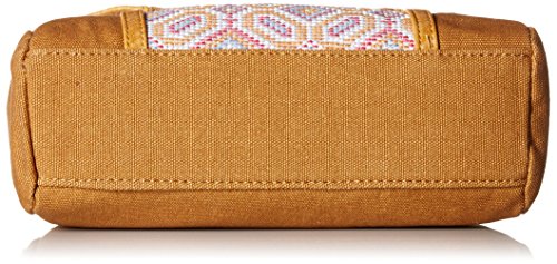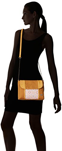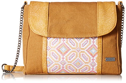 Small cotton cross body bag, mixed with faux leather trims and custom novelty fabric, Roxy metal logo plate. ^Size: 7,5 h x 9 w x 3,5 d/19H x 23W x 9D cm