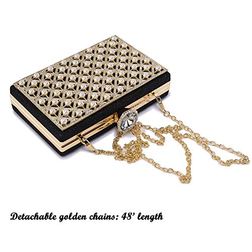 SPARKLING APPEARANCE-The evening clutch is constructed by hard metal ,covered with glitter fabric and decorated with pearl,diamante clasp closure. The sparkling appearance make you stand out in the crowd and attract admiring glance.
