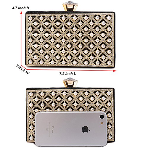 Welcome to Migubal Pearl Beaded Evening Clutch Reasons for your choice Constructed by hard metal,covered with glitter fabric and decorated with pearl on the surface,diamante clasp closure and the inside fabric is soft and smooth flannel,would not scuff the monitor of the cellphone.