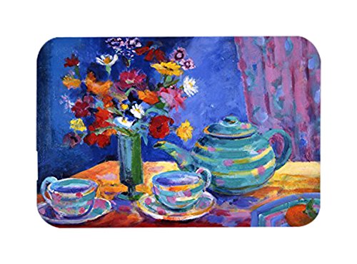Caroline's Treasures Blue Tea by Wendy Hoile Glass Cutting Board, Large, Multicolor