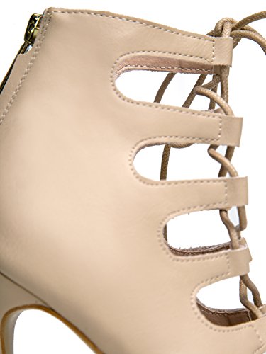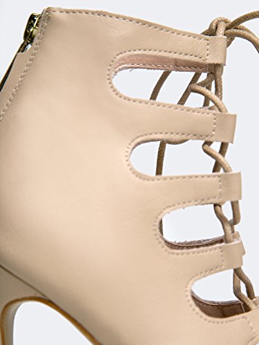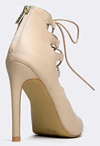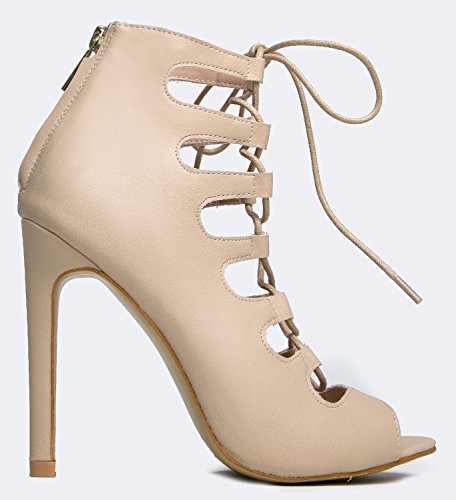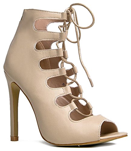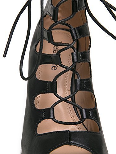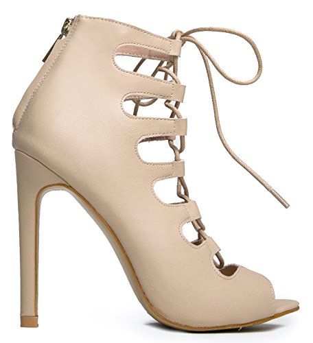 Product Description Are you ready to stun everyone? These heels are extra sexy with a laced up front and peep toe opening. Sandals are made of vegan-friendly leather and has a back zipper closure that completes the look. 0