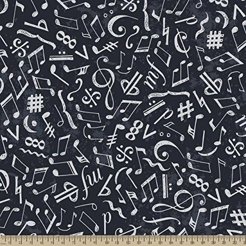 Springs Creative Products Group 55392-B11331 Fleece Fabric Fleece Chalkboard Music Notes Fabric by The yd,Navy