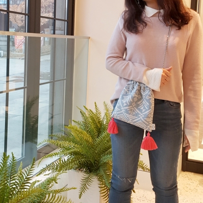 봄을맞아 사랑스러운 느낌을 담아서 하늘하늘한 원피스에 귀여운모자를 쓴 소녀가 소풍을가는 생각을하면서 가볍고 산뜻한 느낌을 주는 제품을 제작하게되었습니다 사랑스러운 데일리백 자가드 원단을 사용했어요! 자가드는 원단의 문양과 윤곽이드러나도록 짜는 것을 말해요! 천에 프린트하는 형식으로 원단이 만들어지는 것이 아니라 여러가지 색의 실을 섞어 무늬를 짜내어낸 원단으로 각각의 실로 짜다보니 원단자체가 두툼해지고, 다른 소재보다 휠씬 무게감이 있게 됩니다. 톡톡한 원단으로 짜임이드러나 입체감이있어 희소가치가 좋은 고급 소재 원단입니다! 사이즈:22X23cm 체인길이:91cm 에스닉 느낌이 나는 시원한 하늘색과 흰색실의 조화가 기분까지좋아지는 산뜻함을 안고있어요!