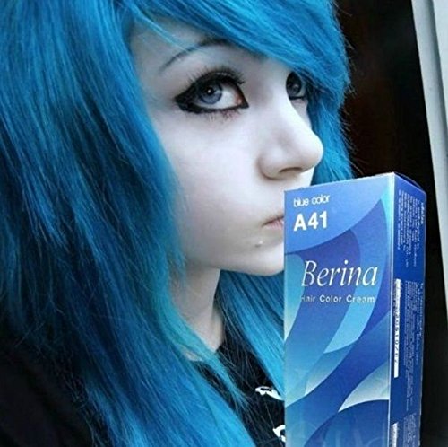 - Title : Berina Permanent Hair Dye Blue Color Cream A41 Free Gloves