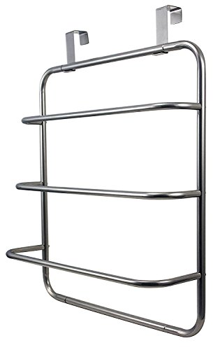 The LDR over the door Towel Rack combines style and practicality making this the perfect addition to your bathroom. The Over the door design does not take and space in the bathroom and there is no need to put holes in the bathroom walls. This is great for tenants or if you have a tiled bathroom walls. A great way to get organized and make sure your bathroom is fully supplied with towels without taking much space. The 3 smooth bars give the towel rack a seamless beautiful design. Easy installation with step by step instructions. The Quality Metal construction is coated with a shiny Chrome finish that is easy to clean, resists rusting and chipping.