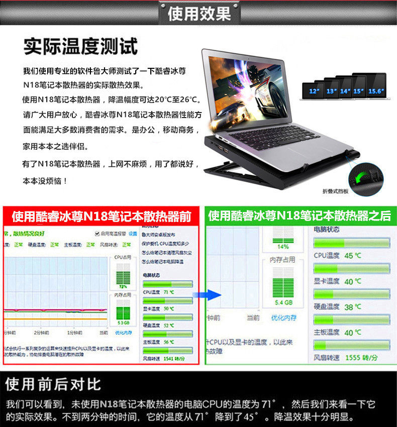 Laptop 14-17 Inch Fan Notebook Cooler Cooling Rack Computer Radiator heatsink Rapid Temperature Drop
