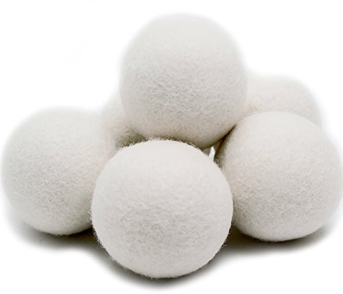 EcoJeannie (WB0006 - 6 Pk) Wool Dryer Balls - Premium XL Organic Eco-Friendly Natural Unscented Non-Toxic Felt Laundry Balls, Anti-Static, Chemical Free, Fabric Softener, 100% Natural New Zealand Wool