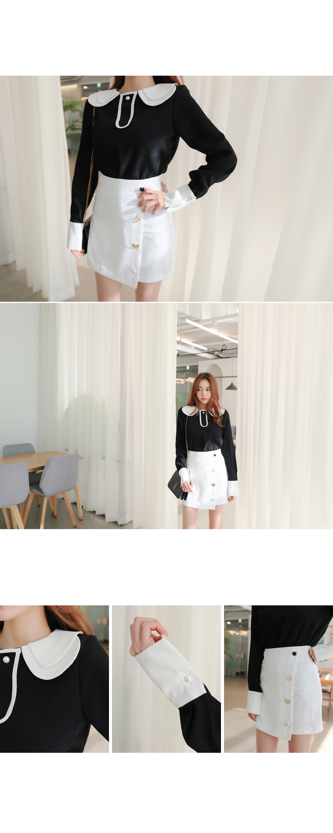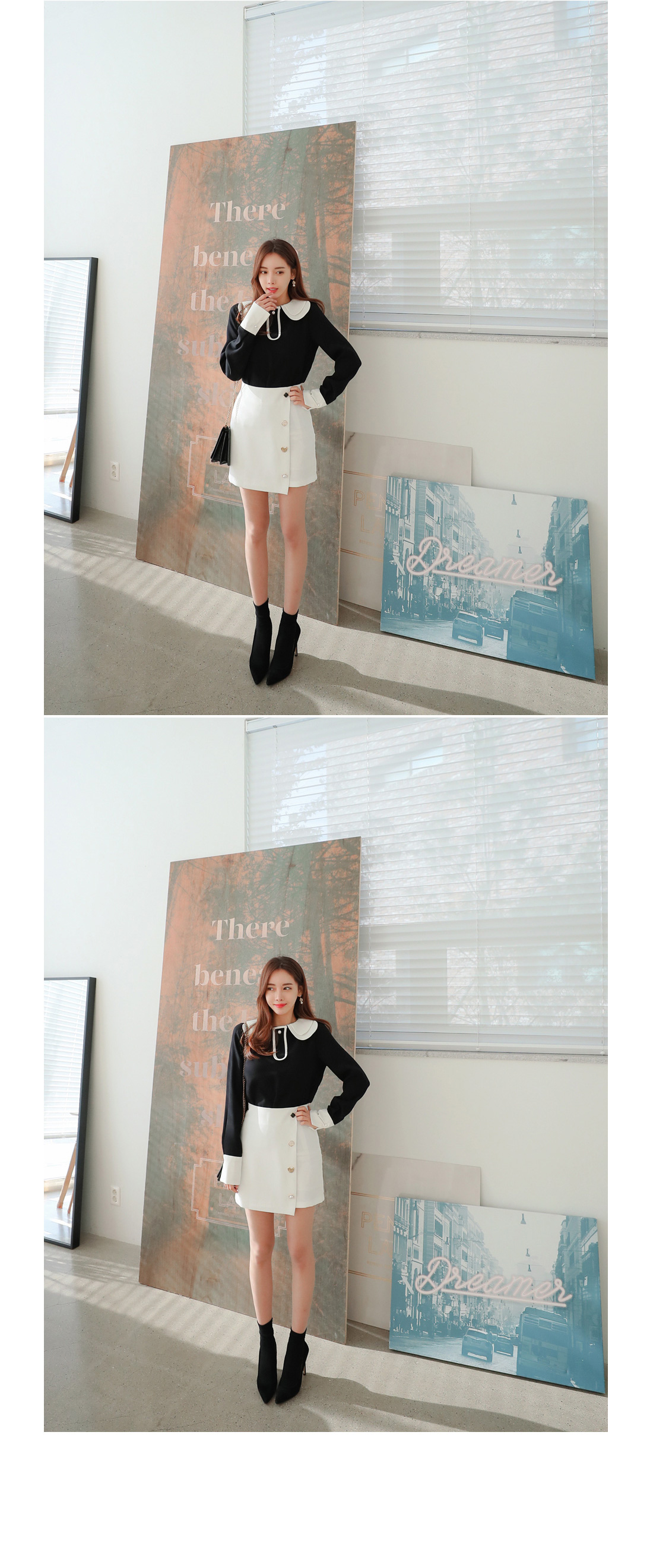 H라인의 미니 스커트로 다리가 길어보이는 효과를 주는데요!