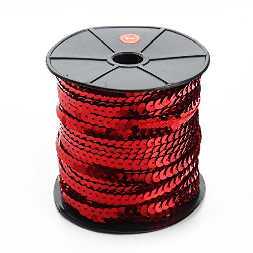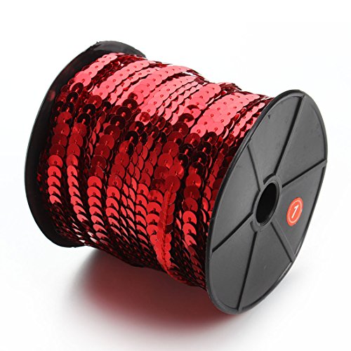 Linsoir Beads Spangle Flat Sequins Paillette Trim Spool String 6mm Sequins 100 Yards Red Color