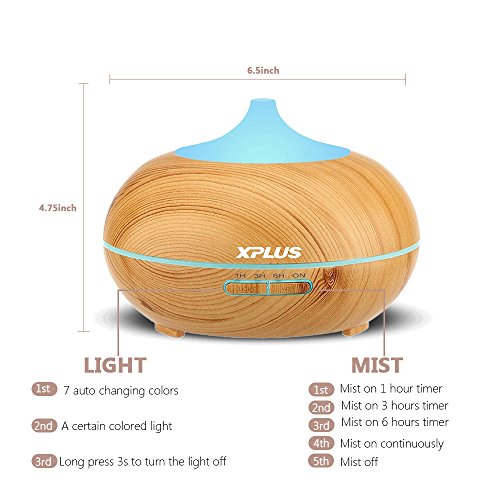 Studio : XPLUS Publisher : XPLUS Binding : Kitchen Product Description XPLUS 300ml Aroma Essential Oil Diffuser Aromatherapy Ultrasonic Cool Mist Humidifier with Color LED Lights Changing