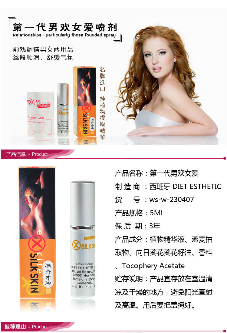 本品是由西班牙excite(万事私迷)公司出品,西班牙顶尖生化科技研发而成,已获得欧盟CE认证,其由无数种天然成份萃取,可长期使用。