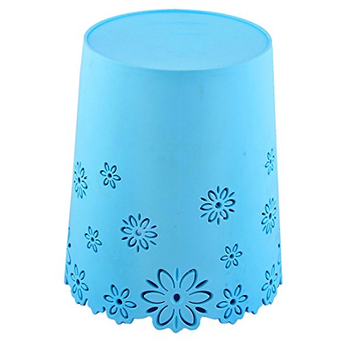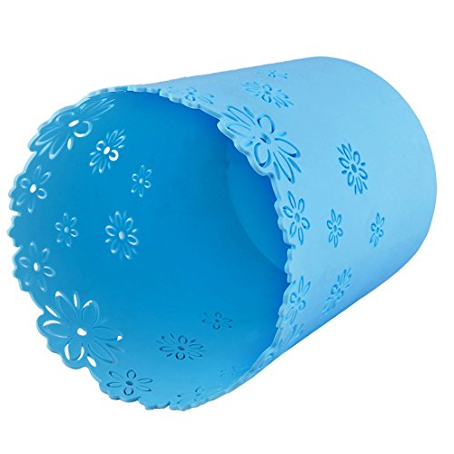 uxcell Plastic Flower Pattern Home Hollow Out Waste Paper Trash Garbage Can Sky Blue
