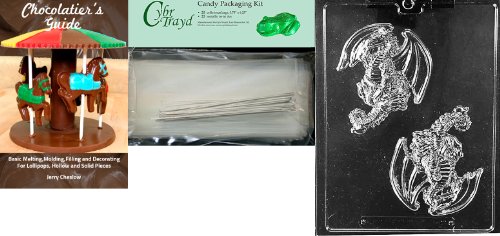 Cybrtrayd Large Dragon Piece International Chocolate Candy Mold with Chocolatier's Bundle, Includes 25 Cello Bags, 25 Silver Twist Ties and Chocolatier's Guide