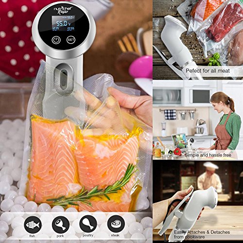 - GREAT ADDITION TO ANY RECIPE: The sous vide equipment is your secret weapon to mastering any recipe easy. Overcooking can result in a loss of moisture and volume. Precision cooking with the sous vide immersion circulator enables you to cook steak, poultry, fish, egg, and vegetables expertly from edge to edge.