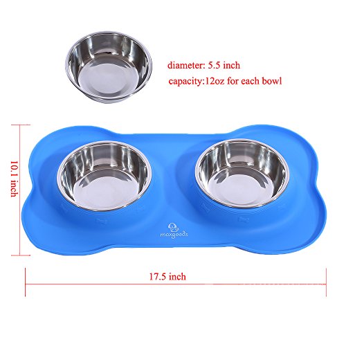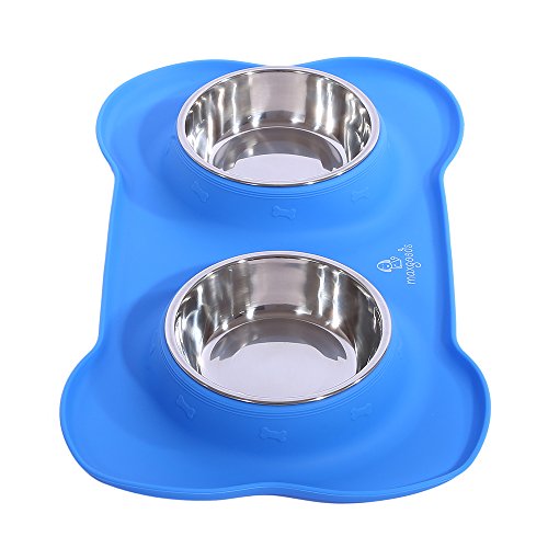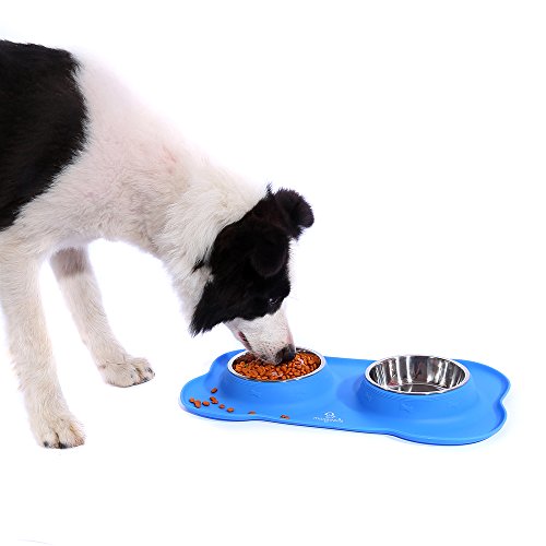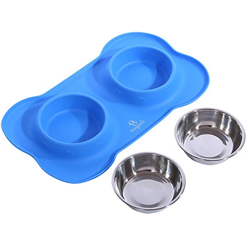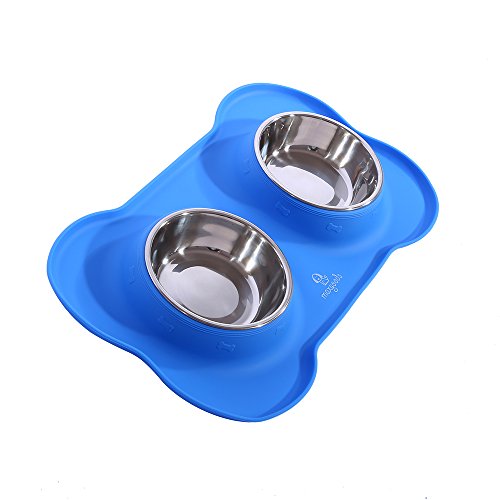 Genenic Dog Bowls , Double Stainless Steel Pet Bowls with Non-skid Anti-overflow Silicon Mat for Dogs Cats and Small Pets