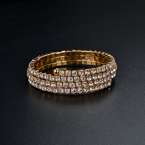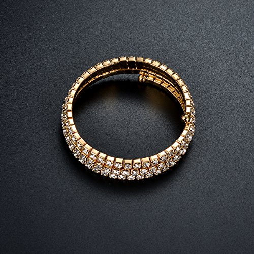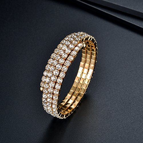 -. Title : Gold Plated Wrap Cuff Bracelet Multi Strand 3 Layer Bangle Swarovski Elements Crystal Rhinestone Bracelet