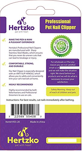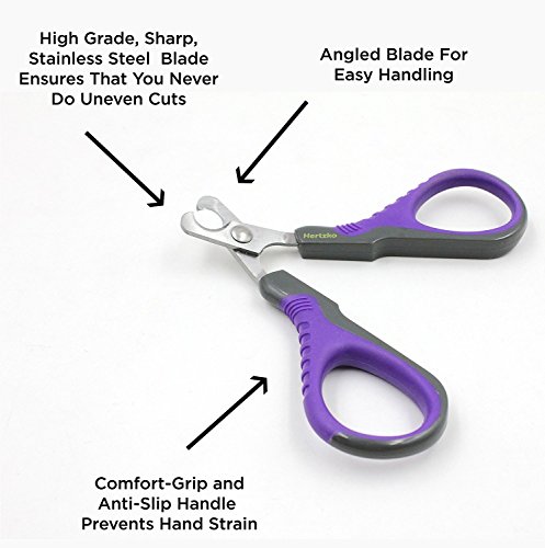 Professional Pet Nail Scissors By Hertzko - Sharp Stainless Steel Angled Blade for Easy Cutting - Suitable for Small Breed Animals - Dogs, Cats, Rabbits and Birds