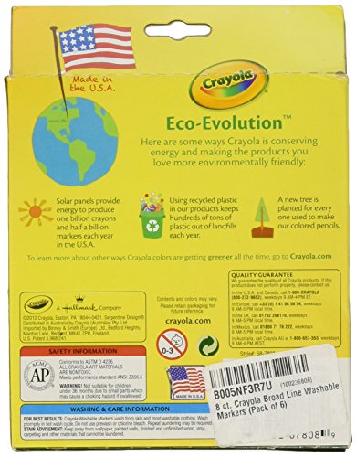 Great Color Variety,Eight Conical Tip Broadline Markers,A classroom favorite.,Washes off skin and clothing.,Water-based ink.