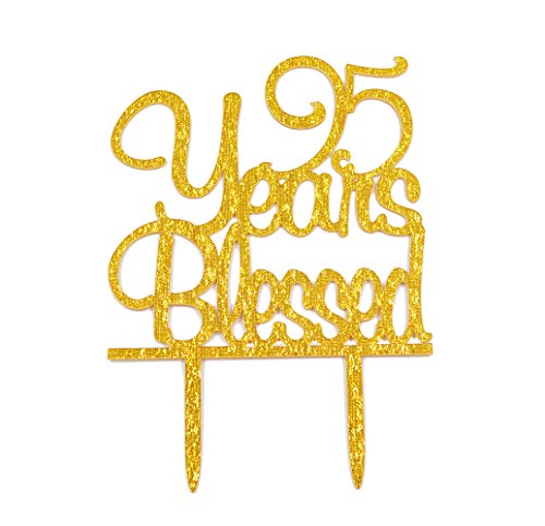 Firefairy(TM) 95 Years Blessed Acrylic Cake Topper 95th Birthday Anniversary Party Decoration Supplies(Gold)