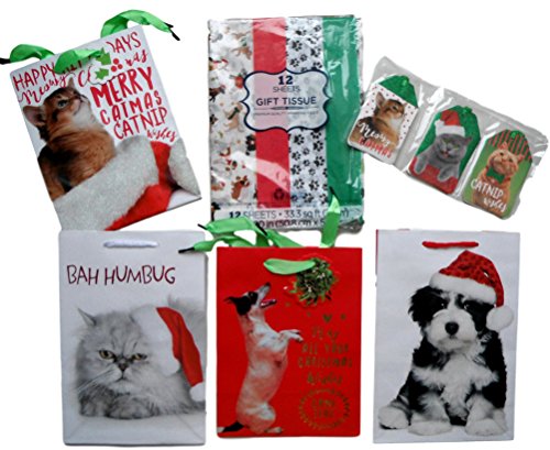 Product Description Dog and Cat Christmas Gift Bags, Tissue Paper, and Gift Tags Wrapping Set 0